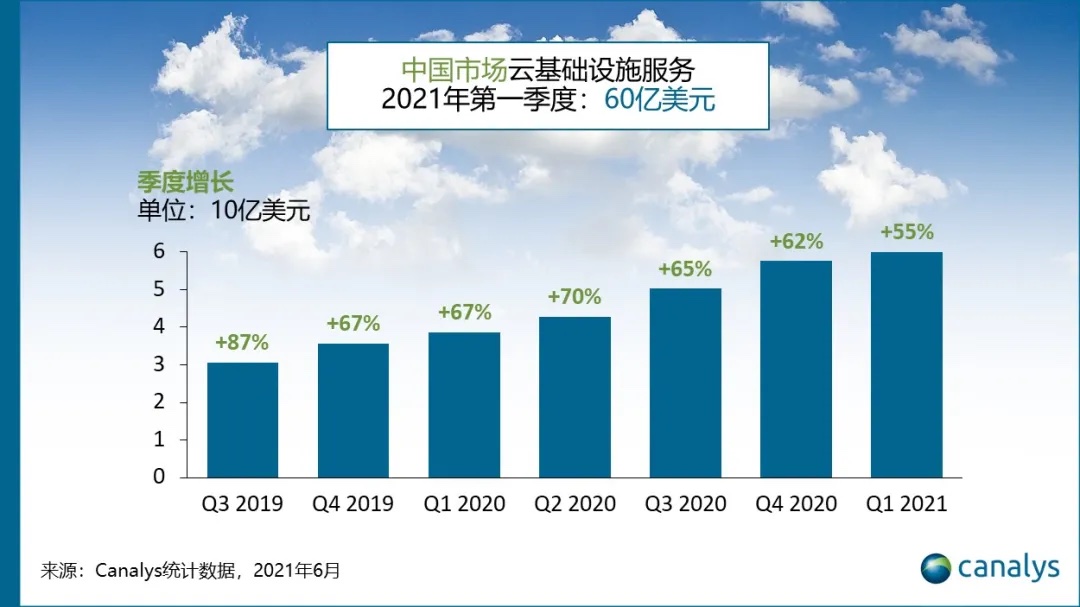 ,2021 年第一季度我国商场的云基础设备服务开销陡增 55%,到达 60 亿美元。总开销与 2020 年第一季度比较添加了 21 亿美元,比上一季度添加逾 2 亿美元以上。年度开销环比添加放缓,标明我国云服务供给商的事务遭到了必定程度的搅扰。但因为我国政府将云核算列为首要的战略重点这一利好,我国商场的云基础设备服务添加继续超越全球其他区域。影响投入的几个关键因素包含经济快速添加以及新冠疫情后数字化转型日益备受重视。整体而言,我国是仅次于美国的第二大商场,占全球投入的 14%,高于 2020 年第一季度的 12%。我国四大云服务供给商是阿里云、华为云、腾讯云和百度智能云,这四大巨子共占总开销的80%以上。Canalys 分析师 Blake Murray 说:“数字化服务包含从数字化付出和内容到客户互动和社交互动以及长途学习的一切内容,它们是在我国商场促进云基础设备服务需求添加的关键因素。”新冠疫情迸发一年后,我国的云服务供给商协助加速了我国政府及其他安排的数字化议程,一起将转型方案从多年紧缩至极短的期限内。它们可以在疫情前期与客户树立重要联系,以支撑快速的数字化转型。现在它们正大力投入,以添加核算容量,开发根据云的数据库、存储和核算才能以替代本地 IT 基础设备,为云原生开发打造广泛的开发者生态系统,并将云和人工智能扩展到各行各业。