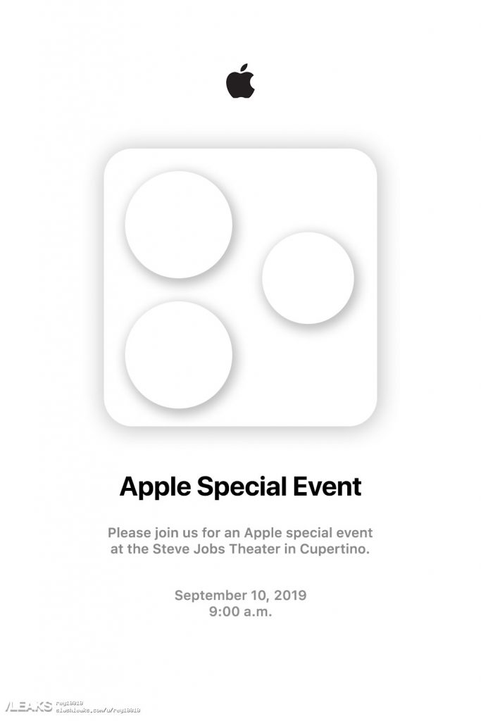 网站呈现一幅疑似苹果邀请函的图片,图中显现,苹果发布会将在当地时间 9 月 10 日上午 9 点举行,地点在史蒂夫·乔布斯剧院。这幅图片还包含了一个很像此前风闻中“浴霸”三摄模组的轮廓图,假如邀请函是真的,那么也就确认了新款