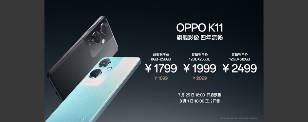 全新发布的OPPO K11 具有冰川蓝、月影灰 2 种配色计划,8+256GB 版别价格 1899元,12+256GB 版别价格 2099元,12+512GB 版别价格 2499 元。
